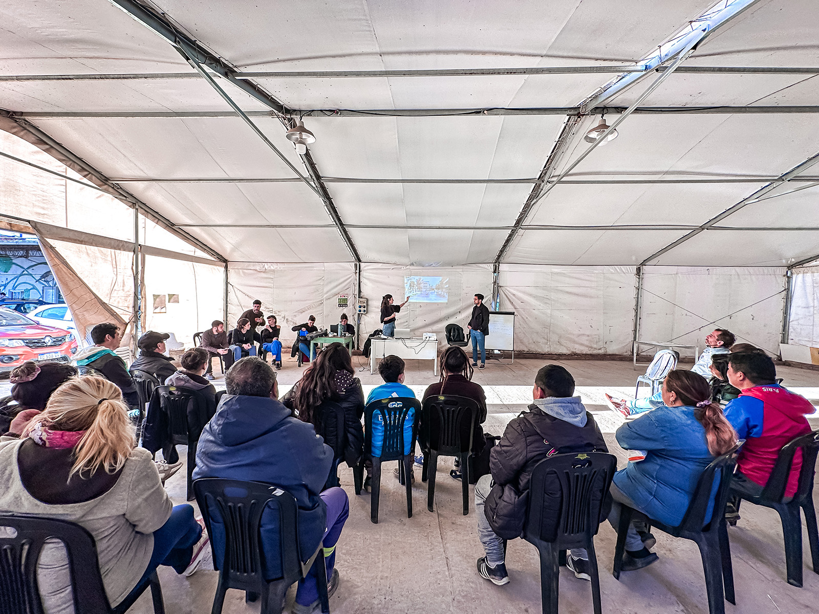 En el marco del proyecto Playón Red, la intervención se desarrolla en un espacio vacío que, desde la conformación del barrio, había funcionado como cancha de fútbol. Sin embargo, con el proceso de integración socio-urbana iniciado en 2017 por el gobierno local, el área fue atravesada por la apertura de la calle Palpa, lo que generó un vacío urbano residual. Este espacio no facilitaba nuevas formas de apropiación y representaba un problema de inseguridad para el barrio. Se planteó recuperar el lugar para la integración comunitaria a través del deporte y el juego, restaurando su función original.